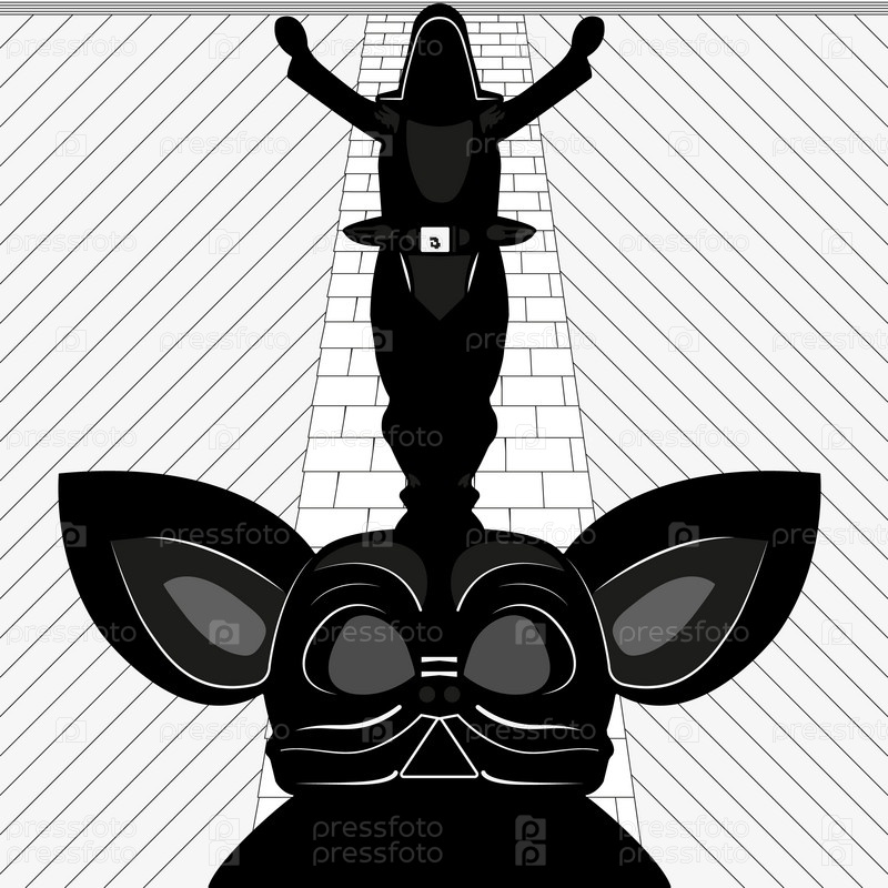 Силуэт монстра. силуэт чудовища и человек. фон линий. икона. печать. иллюстрация