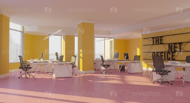 3D-интерьер светлого открытого офисного пространства. рендеринг концептуального дизайна