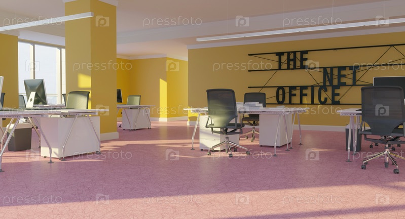 3D-интерьер светлого открытого офисного пространства. рендеринг концептуального дизайна