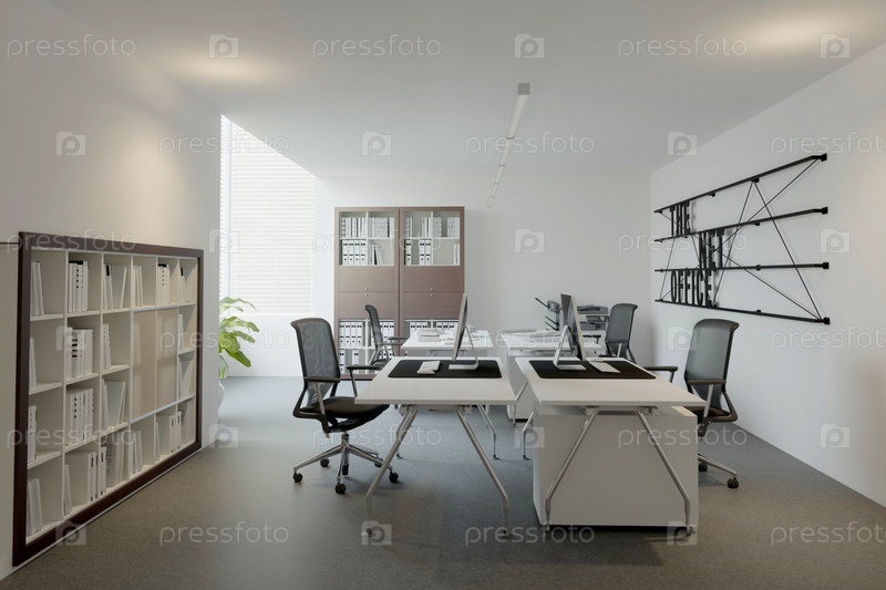 3D-интерьер светлого открытого офисного пространства. рендеринг концептуального дизайна