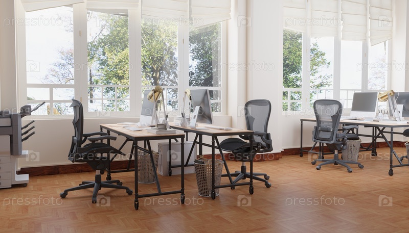 3D-интерьер светлого открытого офисного пространства. рендеринг концептуального дизайна