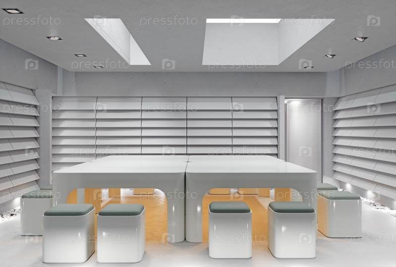 3D-интерьер светлого открытого офисного пространства. рендеринг концептуального дизайна