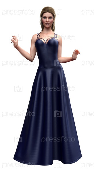 3D Блондинка в синем вечернем платье