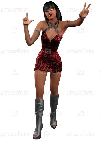 3D-рендеринг темнокожей девушки в красном платье с блесками