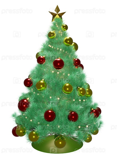3D-рендеринг сосны с красными и золотыми шариками