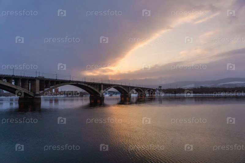 Коммунальный мост в Красноярске на рассвете