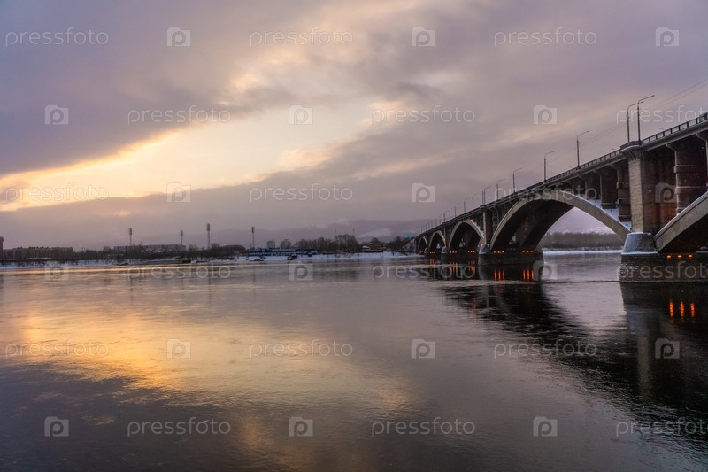 Коммунальный мост в Красноярске на рассвете