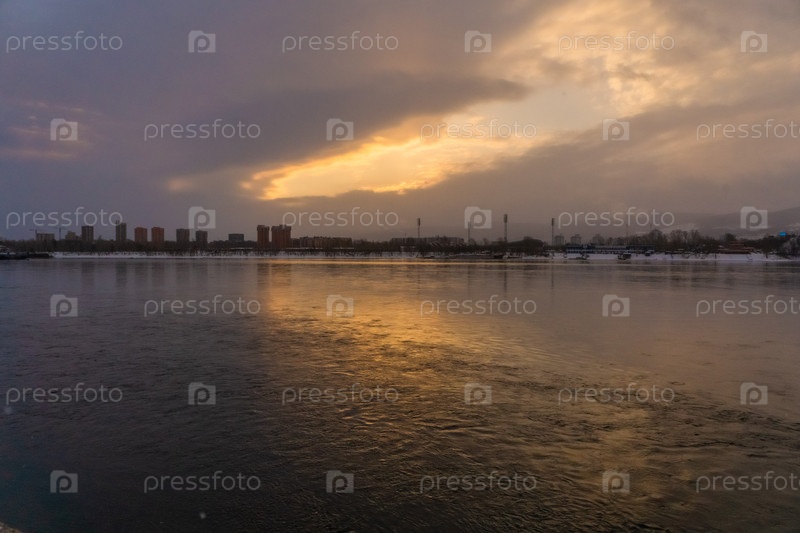 Коммунальный мост в Красноярске на рассвете