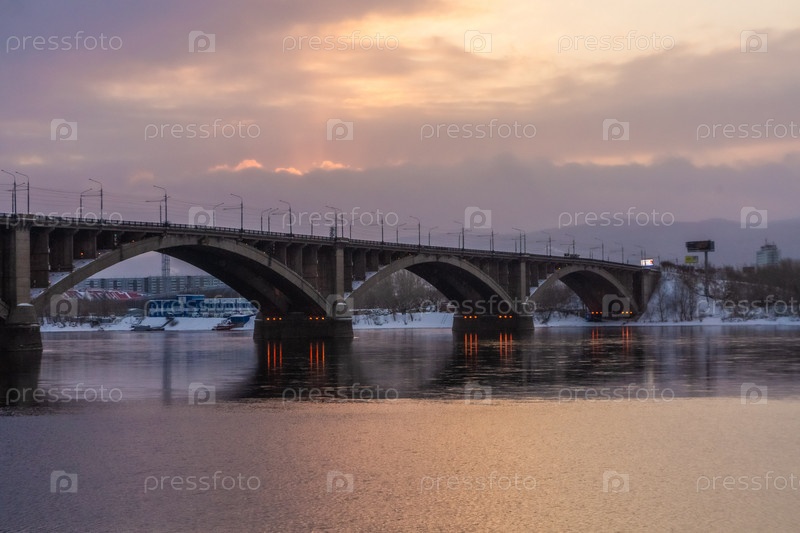 Коммунальный мост в Красноярске на рассвете