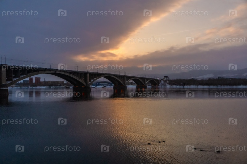 Коммунальный мост в Красноярске на рассвете