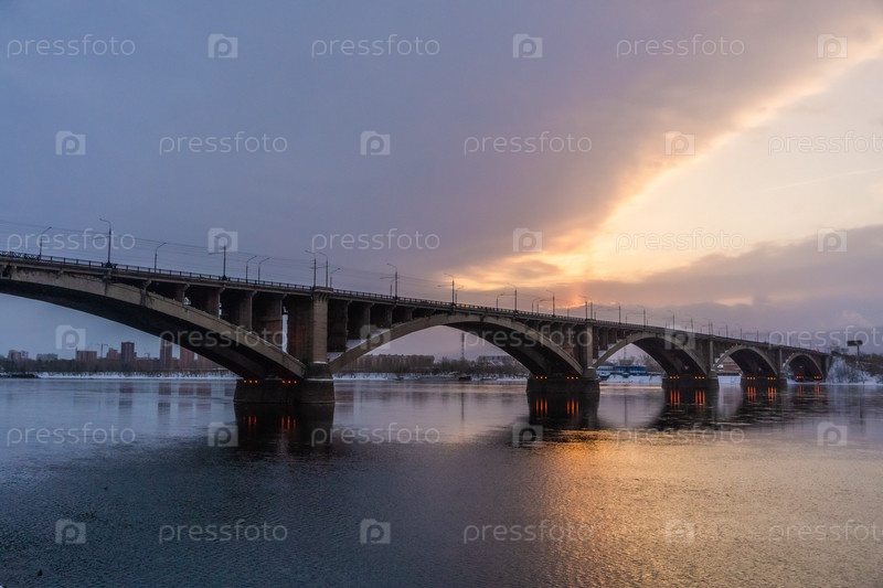 Коммунальный мост в Красноярске на рассвете