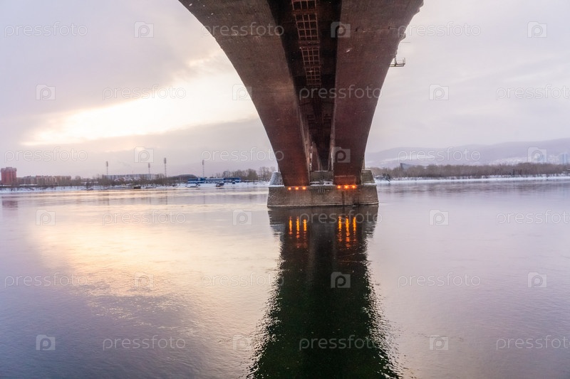 Коммунальный мост в Красноярске на рассвете