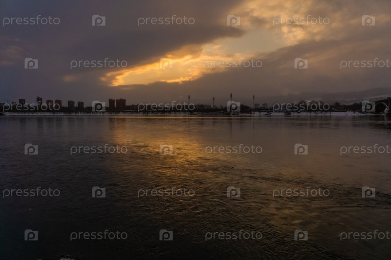 Коммунальный мост в Красноярске на рассвете