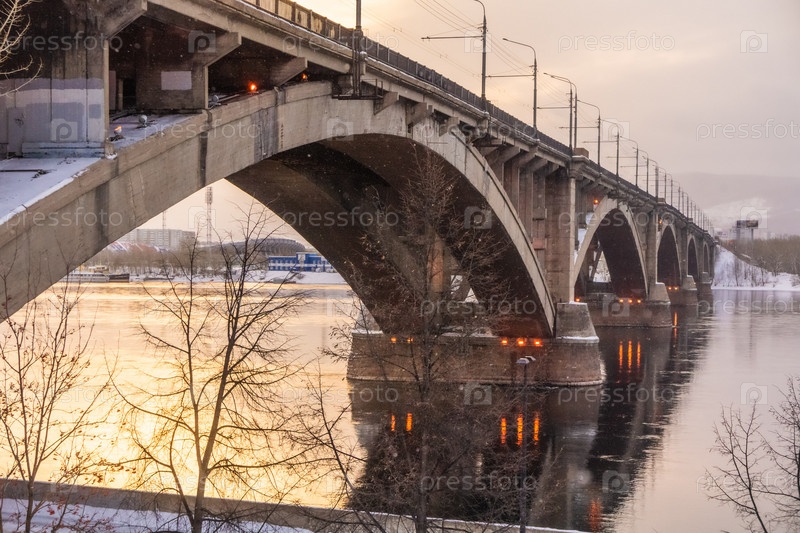 Коммунальный мост в Красноярске на рассвете