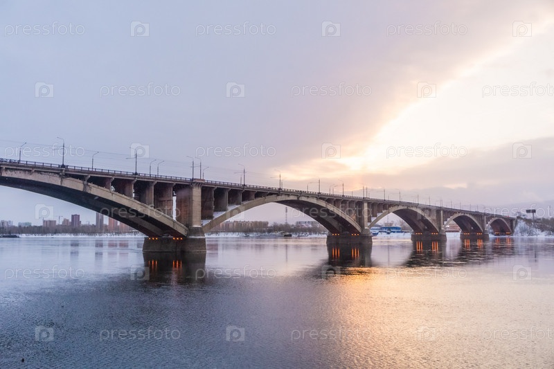 Коммунальный мост в Красноярске на рассвете