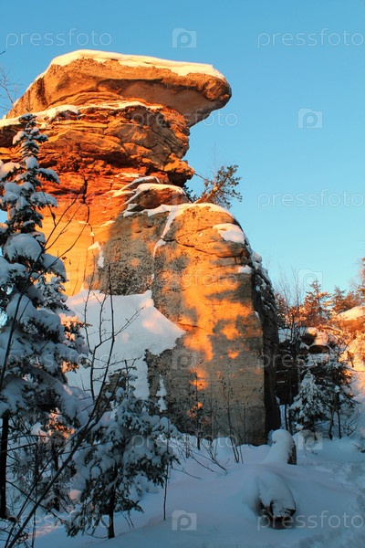 Каменный город и Белый камень в лучах закатного солнца. Находится недалеко от поселка Шумихинский Губахинского района Пермского края