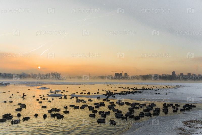 Река в Сибири на рассвете на рассвете