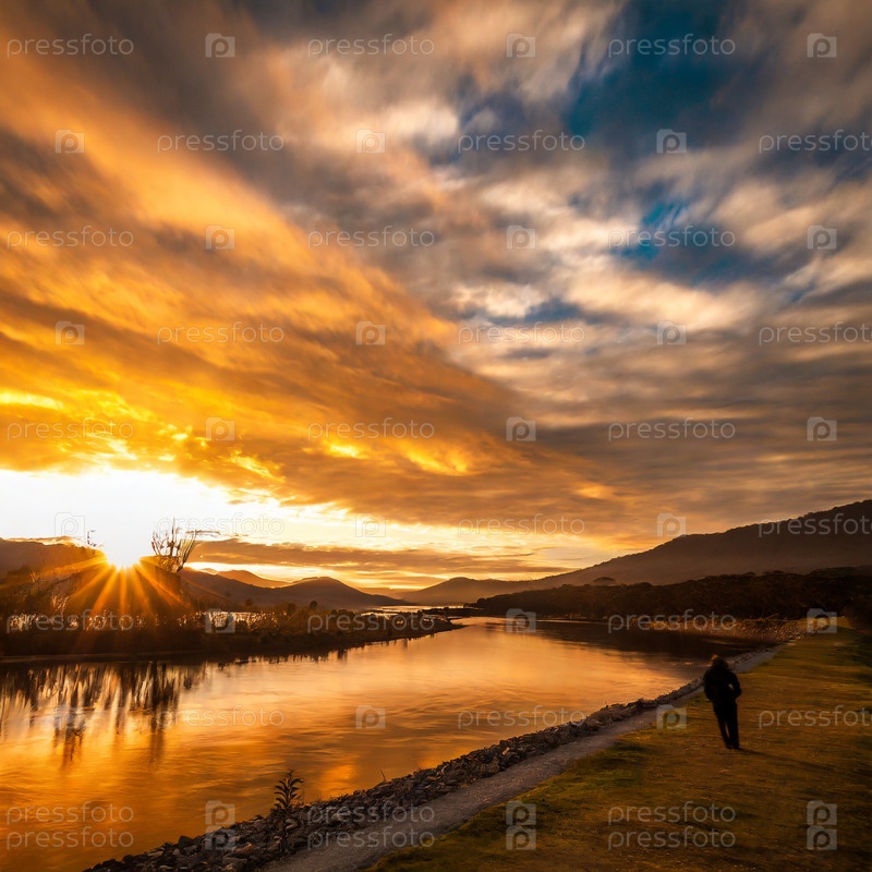 Река в Сибири на рассвете на рассвете