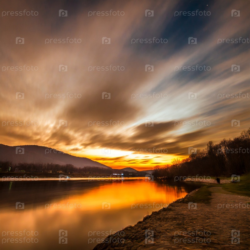 Река в Сибири на рассвете на рассвете