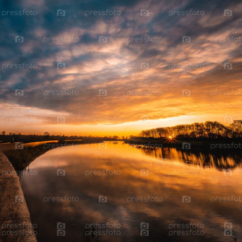Река в Сибири на рассвете на рассвете