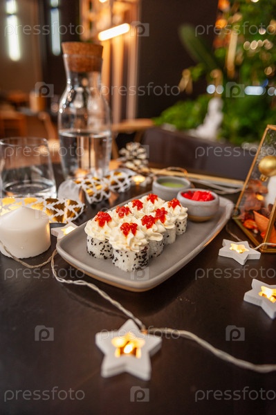 Суши-ролл со сливочным сыром, кунжутом и икрой лосося