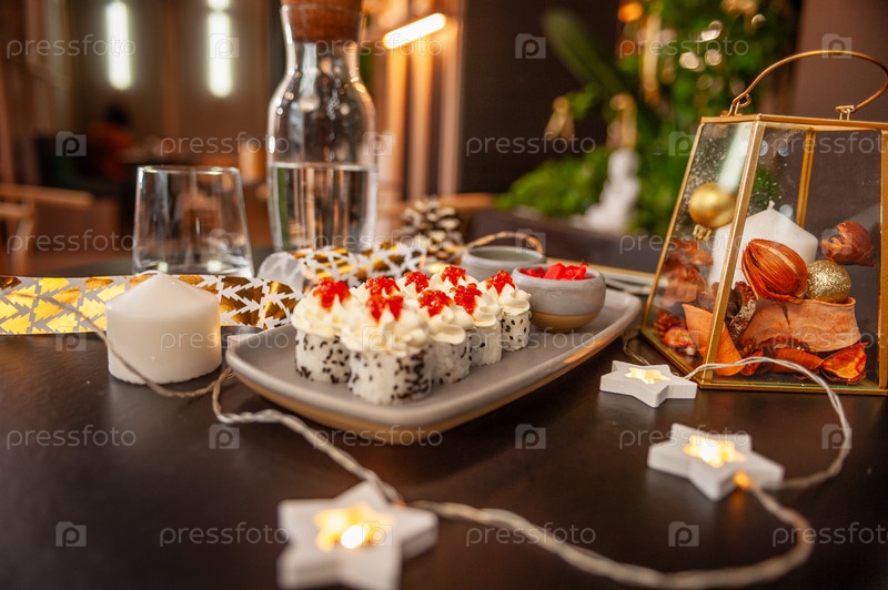 Суши-ролл со сливочным сыром, кунжутом и икрой лосося