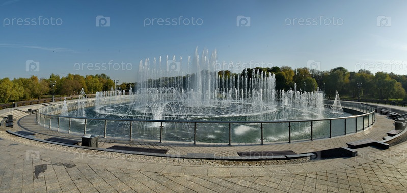 Москва. Россия. Сентябрь 29, 2023. Вид на уникальный цветомузыкальный фонтан в центре исторического парка-ансамбля Царицыно