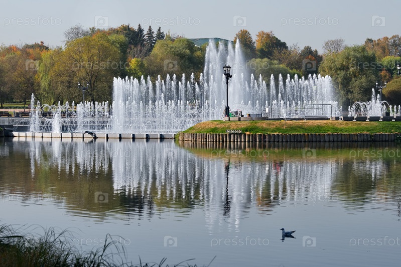 Москва. Россия. Сентябрь 29, 2023. Вид на уникальный цветомузыкальный фонтан в центре исторического парка-ансамбля Царицыно