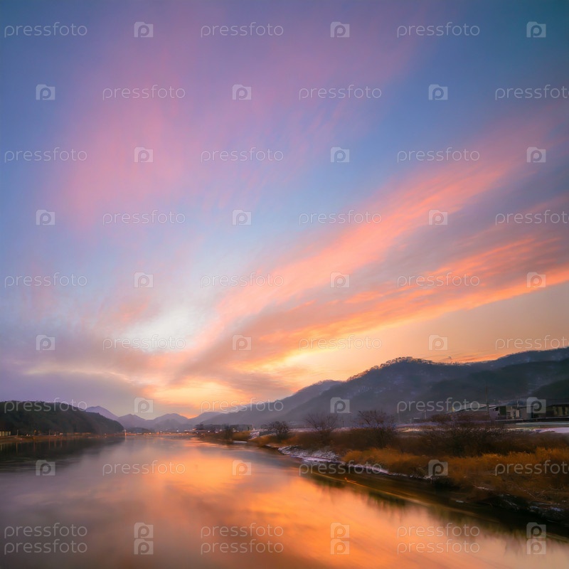 Река в Сибири на рассвете на рассвете