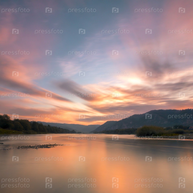 Река в Сибири на рассвете на рассвете