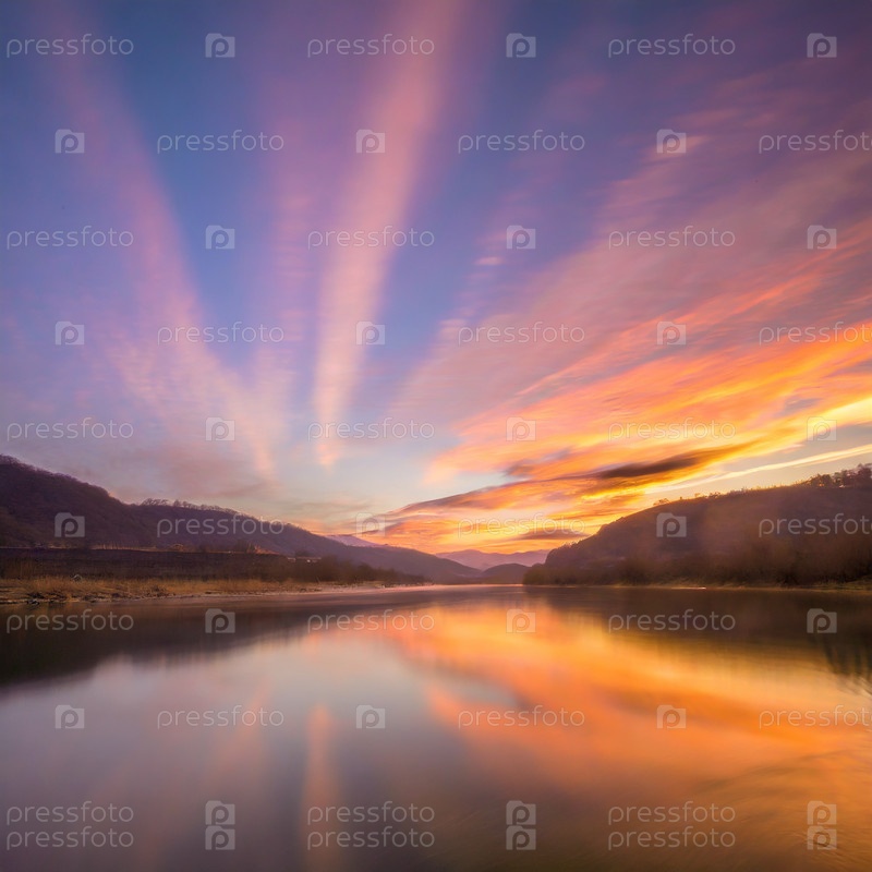 Река в Сибири на рассвете на рассвете