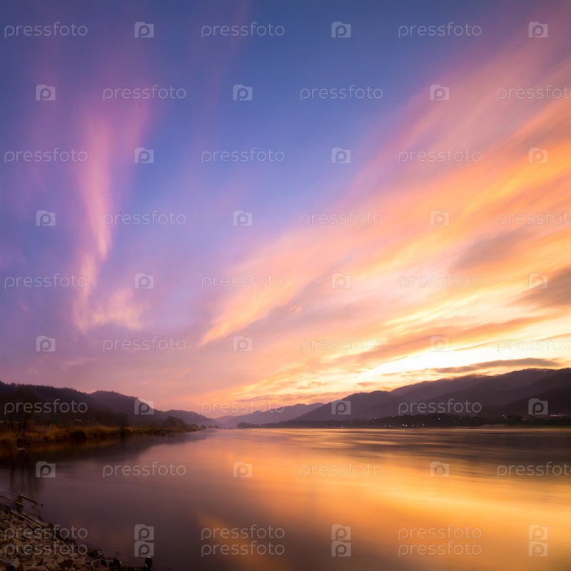Река в Сибири на рассвете на рассвете
