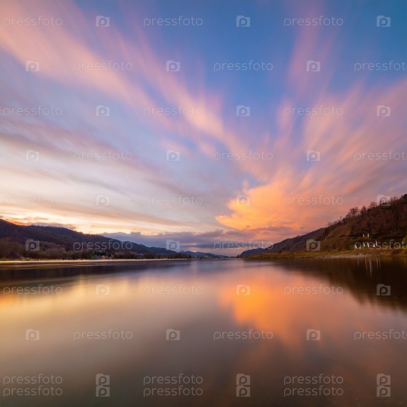 Река в Сибири на рассвете на рассвете