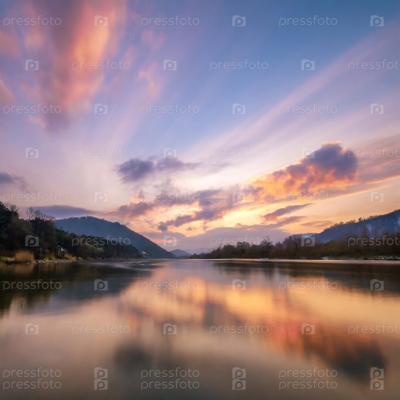 Река в Сибири на рассвете на рассвете