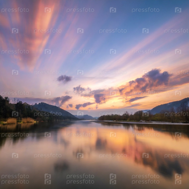 Река в Сибири на рассвете на рассвете