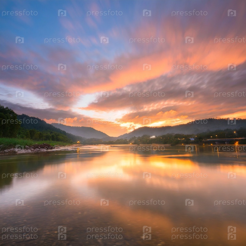 Река в Сибири на рассвете на рассвете
