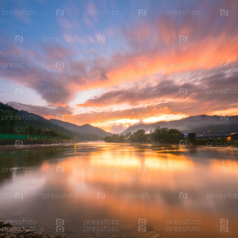 Река в Сибири на рассвете на рассвете