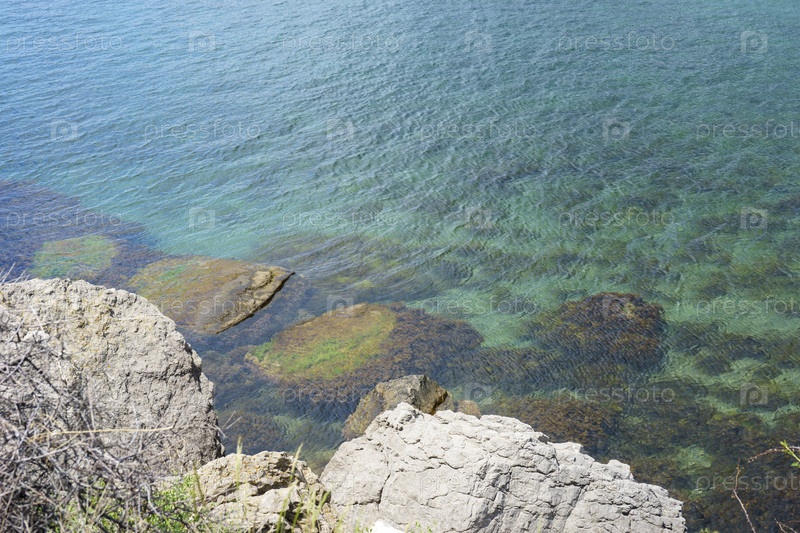 Берег моря со скалами и чистым морем