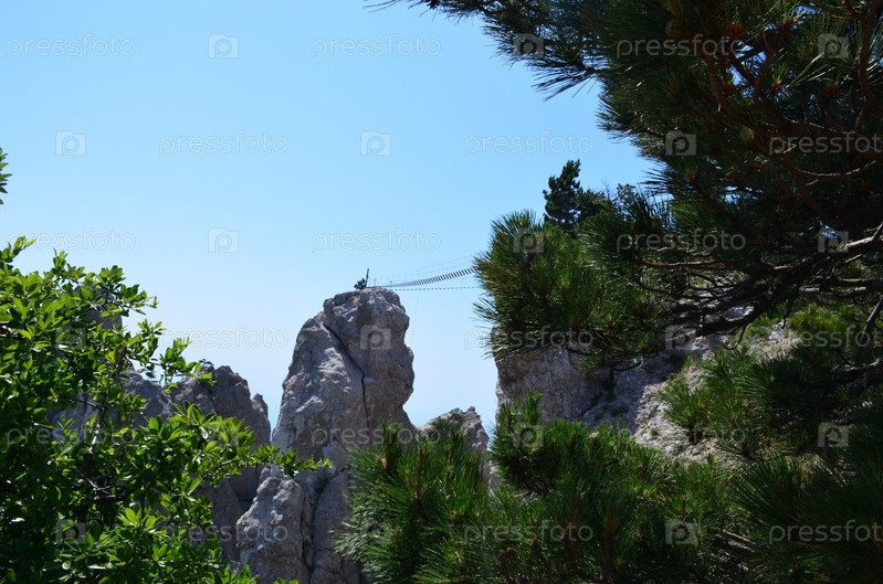 Вид на зубцы горы Ай-Петри в Крыму, экстремальный аттракцион подвесные мосты