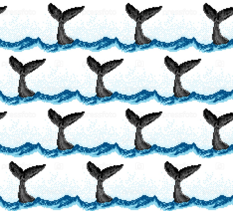 Бесшовный пиксельный фон с китом и морем