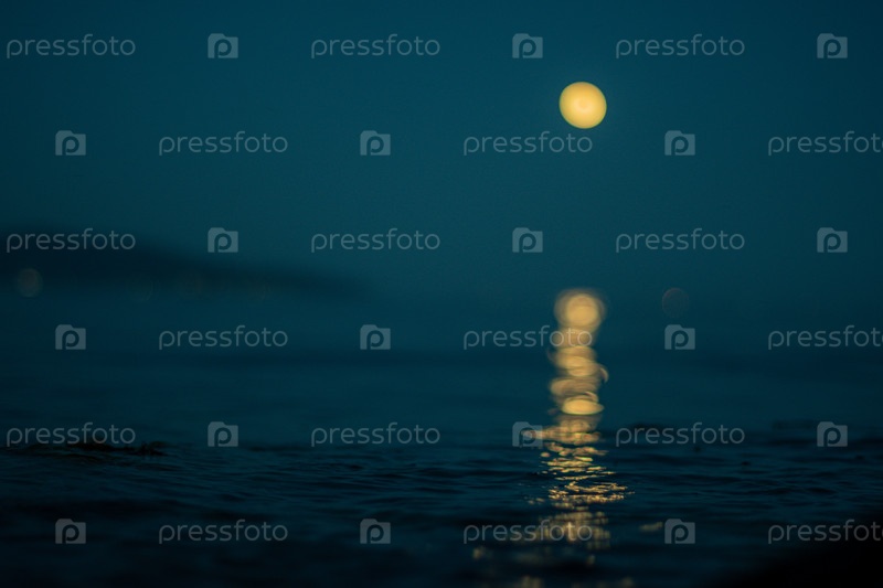 Лунный свет отражается в темной воде голубого моря, размытый фон, обои