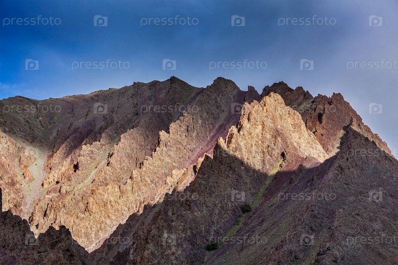 Вершина гималайской горы на закате в Гималаях. Ладакх, Индия