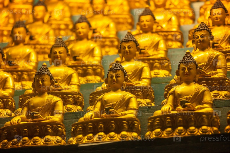 Статуи Будды Шакьямуни в тибетском буддийском храме. Химачал-Прадеш, Индия