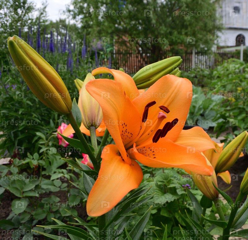 Честная оранжевая лилия в сибирском саду