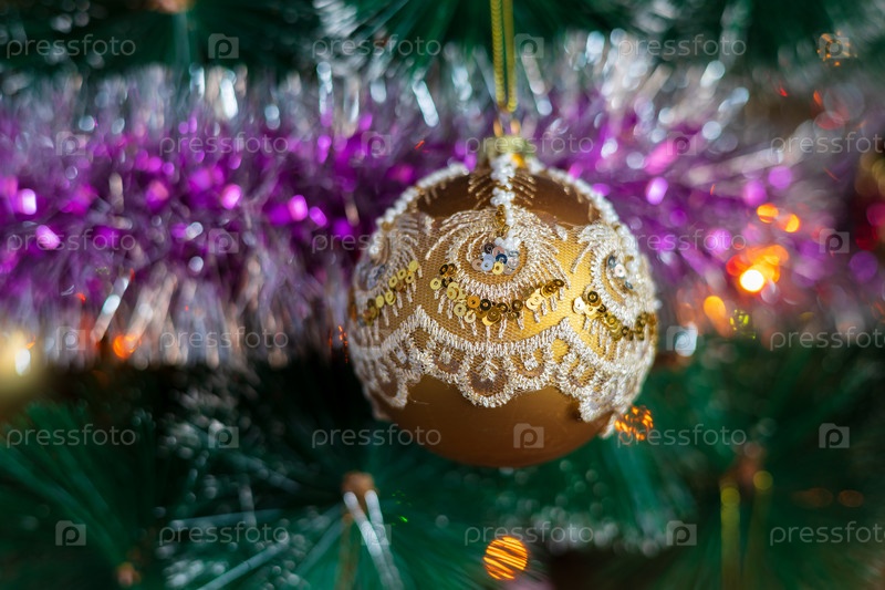 Красивый шар ручной работы на новогодней елке