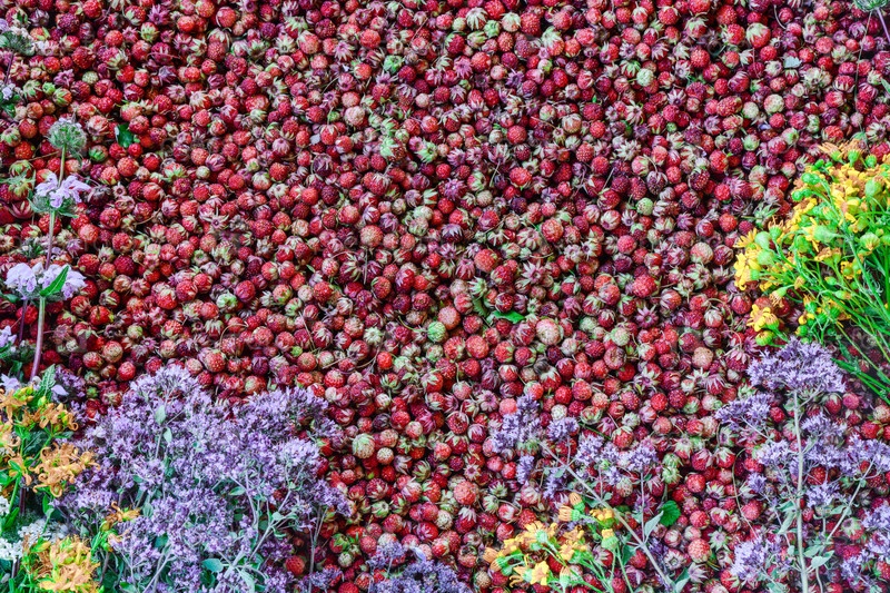 Спелая земляника и свежие лекарственные травы
