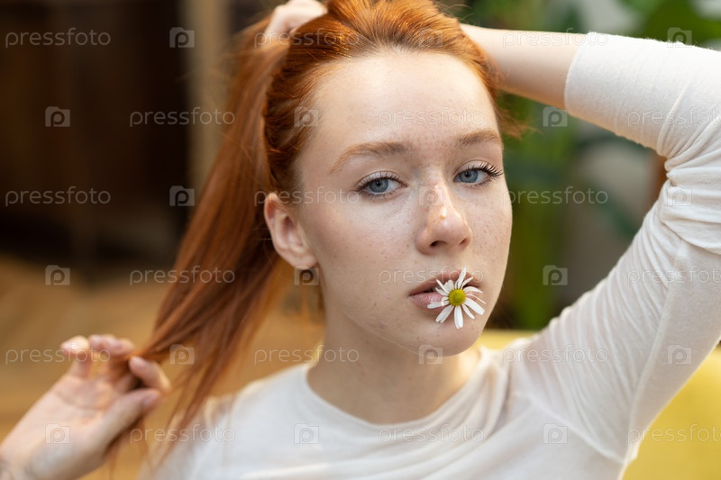 Портрет молодой красивой женщины с рыжими волосами в студии
