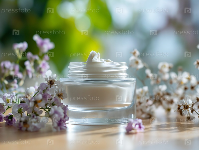 Крем для ухода на столе с цветами