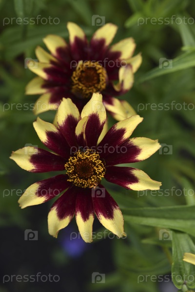 Большие цветы цинии в летнем саду. Яркие цветы крупным планом. Сочный цвет цветов