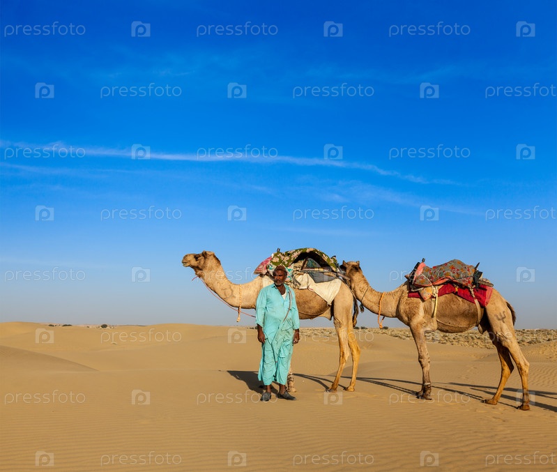 Верблюды Cameleer (гонщик верблюдов) в Раджастане, Индия